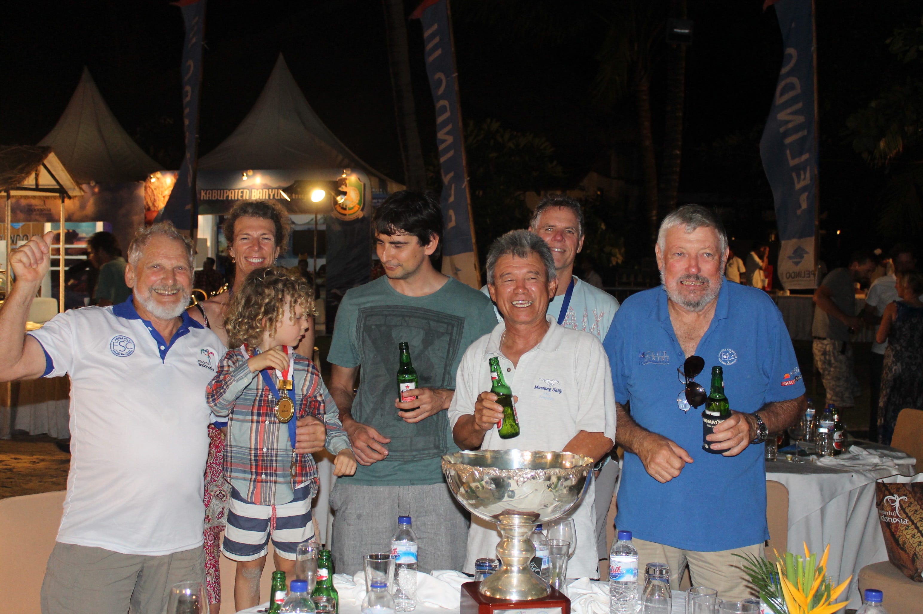 We arrived into Benoa Harbour on the 28th May around midday along with Suesea. Had a nice welcome from shore crew and while awaiting customs immigration etc enjoyed afew cold Bintangs at the yachtclub. The rest of the fleet trickled in over the next few days and most crew opted for hotels in Sanur close to where the prize giving would be. It was too hot to stay on the boat in the marina without any breeze and the facilities were……well, I’ll leave you to imagine. So we also ended up at Hotel Ari Putri in Sanur with lovely air con and swimming pools, which needless to say Morg enjoyed to the max. The next week was spent just mooching around the hotel and local sreets and relaxing.