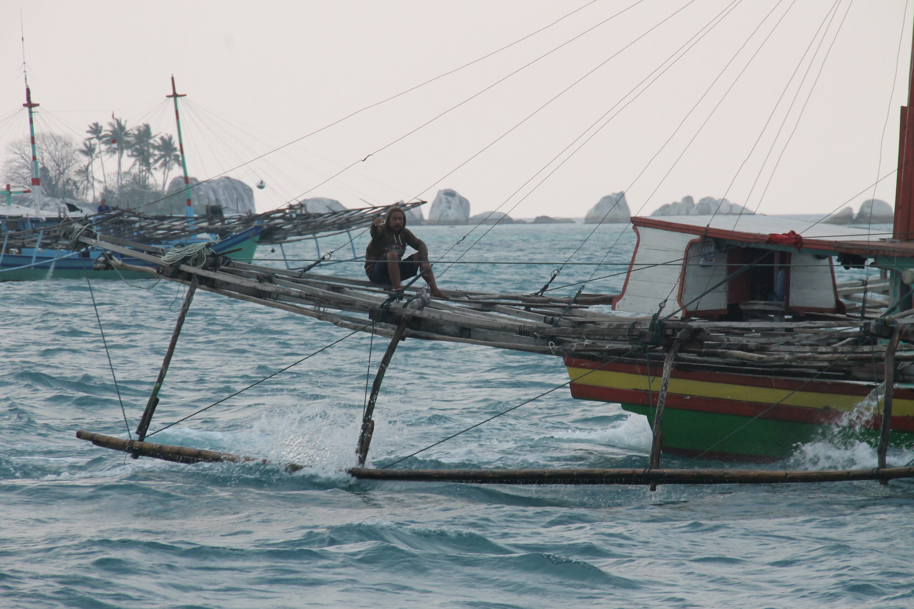 From Karimanjawa we did a two night sail to Belitung and had mainly nice winds from behind the beam. Started motorsailing the next morning for a while and hear which heard the engine falter then regain power a few times until it finally gave up. We had refueled in Semarang and Warren had a feeling that the fuel wasn’t that clean, but luckily only put diesel in the starboard tank so clean fuel in the port one. A change of filters and it was going again.