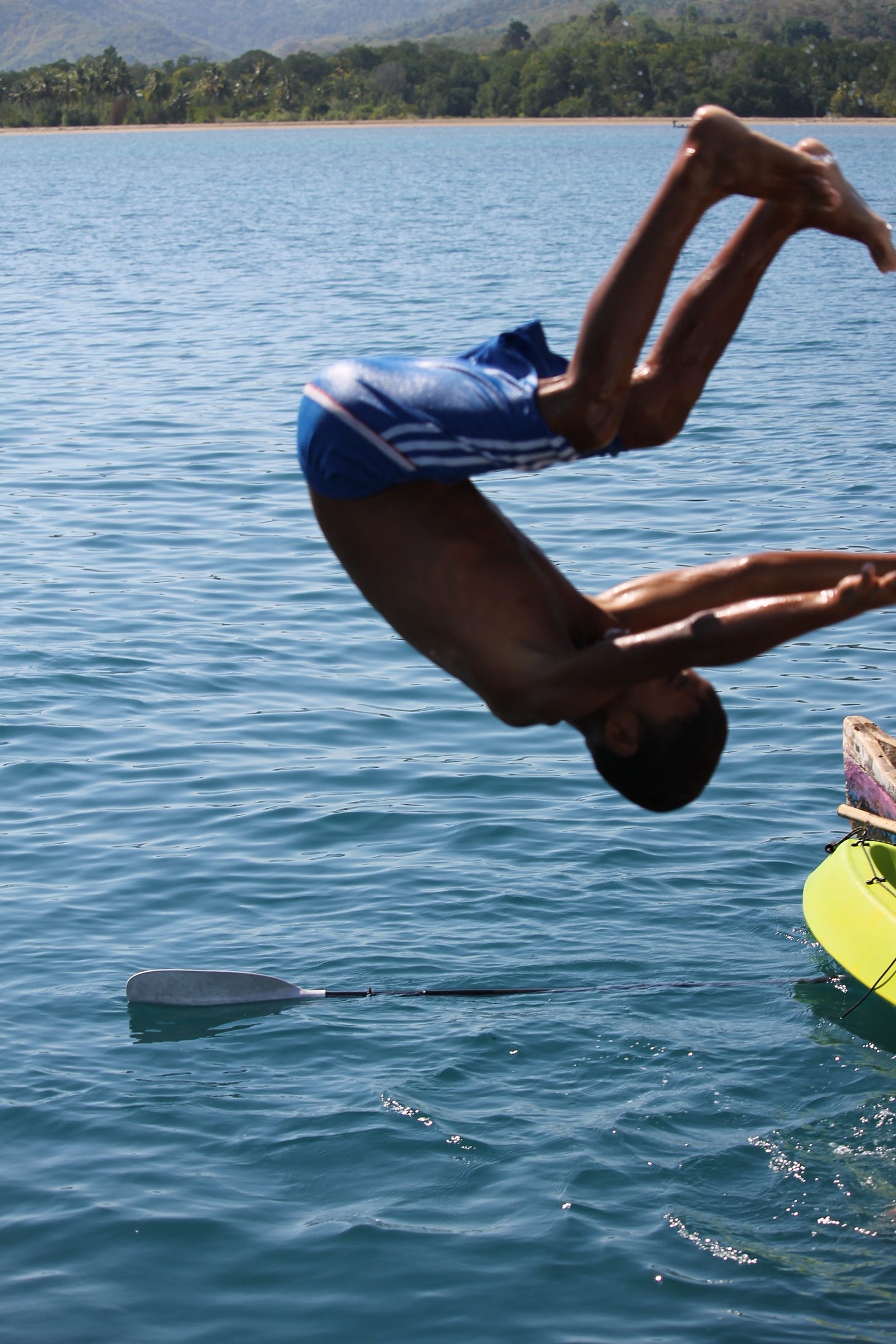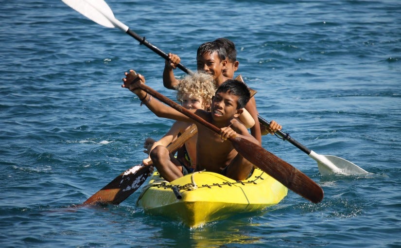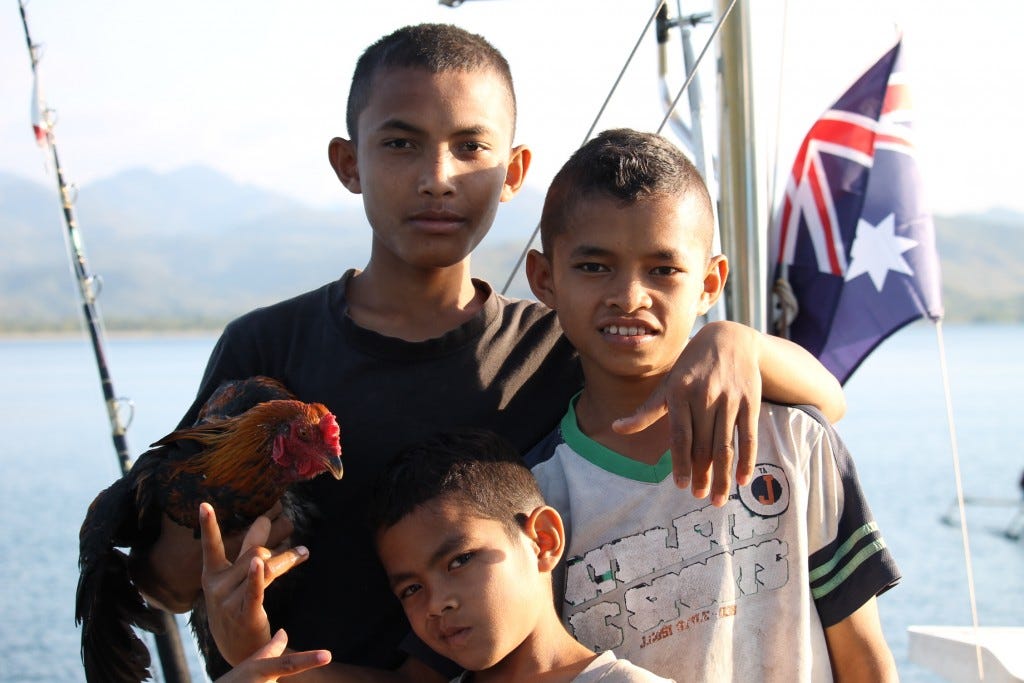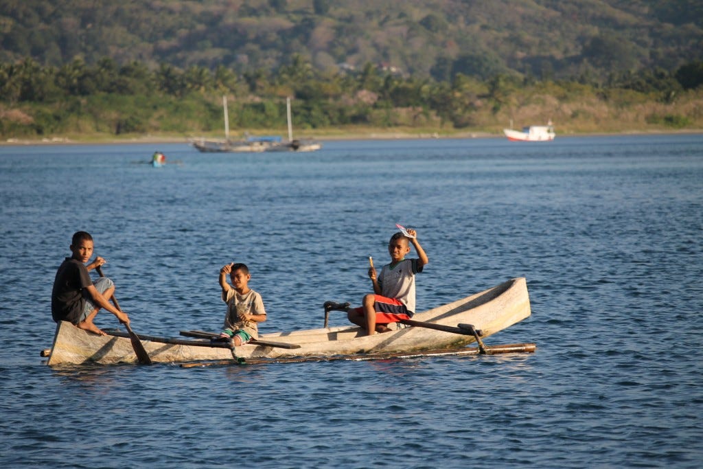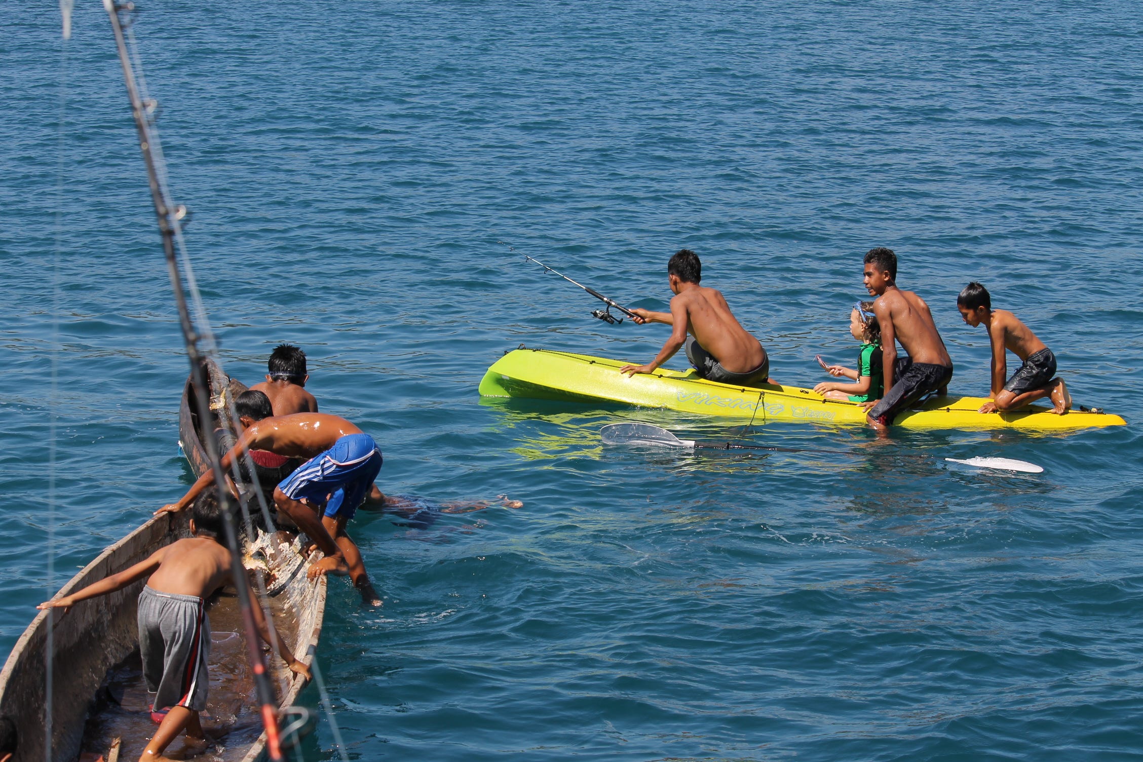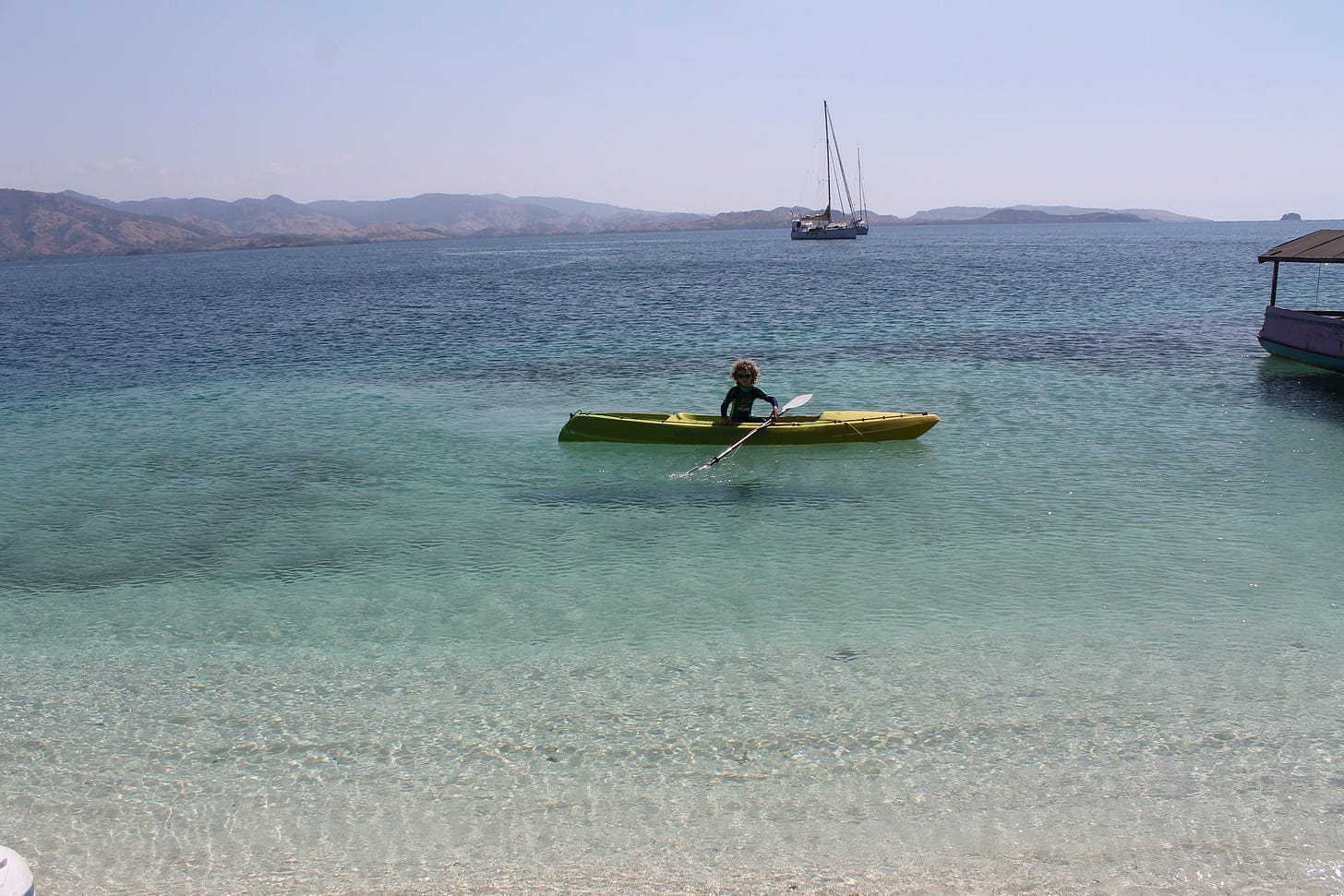 After a night in Sebayor Kecil we sailed to Bari Bay. We had the kayak in the water and the local kids loved it. The bigger boys loved paddling and Morg had a great time swimming and fishing with them around the boat. They were lovely children and the older ones have a real sense of responsibility for the younger kids and Morg.From here we went to Lingeh Bay- a beautiful anchorage in a 200m strip between a reef and the shore.